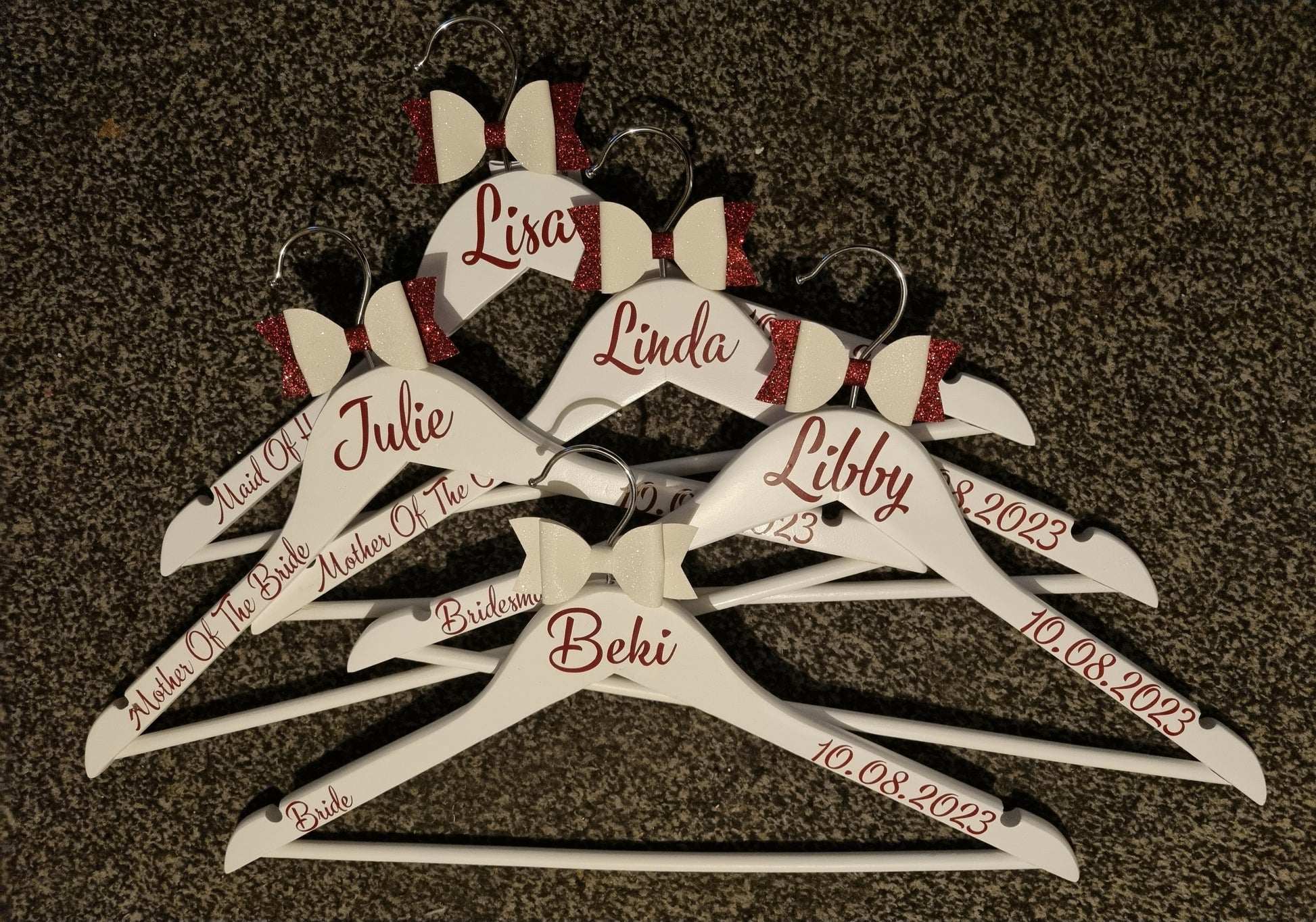 These hangers are wooden with vinyl personalisation